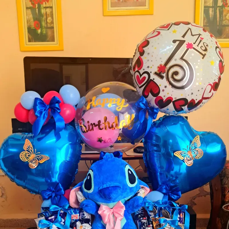 Bandeja surtida de confituras , peluche, bombones para Quinceañera