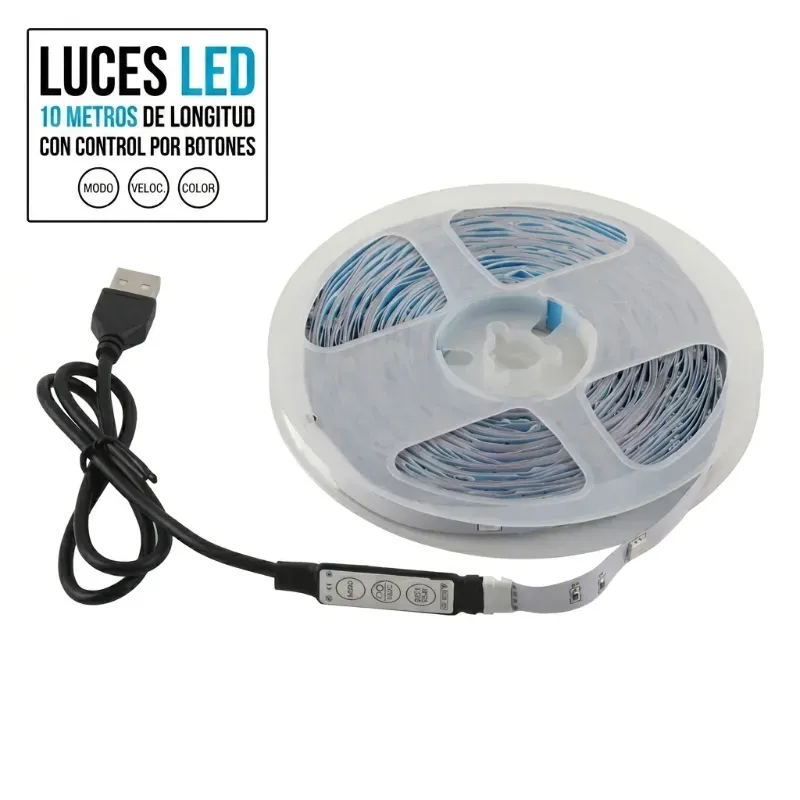Luces Led RGB , rollo de 10 metros , control por botones.