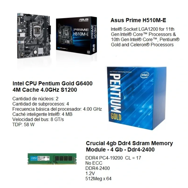 Kit Asus Prime H510M-E / Pentium Gold G6400 / DDR4 4 GB 2400 MHz