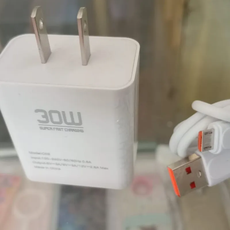 Cajita cargador 30W con cable tipo B (sirve para transmisión de datos)