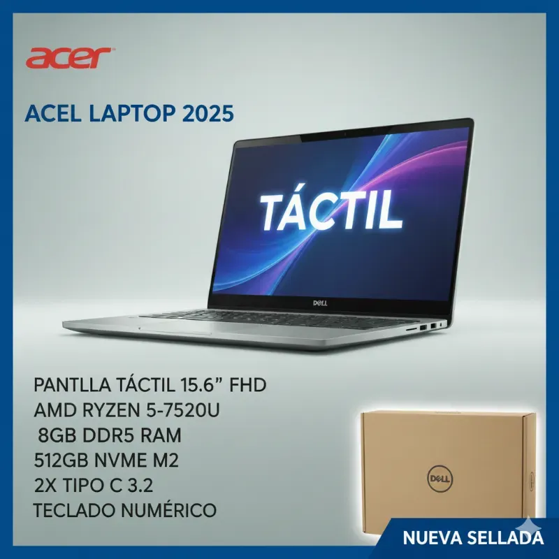 🔥Pantalla ‼️TÁCTIL, 15.6 Pulgadas FHD, AMD Ryzen 5-7520U 🔥ÚLTIMA GENERACIÓN🔥, 8GB RAM DDR5, Almacenamiento 512GB NVMe M2, 2 Puertos Tipo C 3.2, Windows 11, Teclado Numérico 📦 Nueva Sellada en Caja 📦