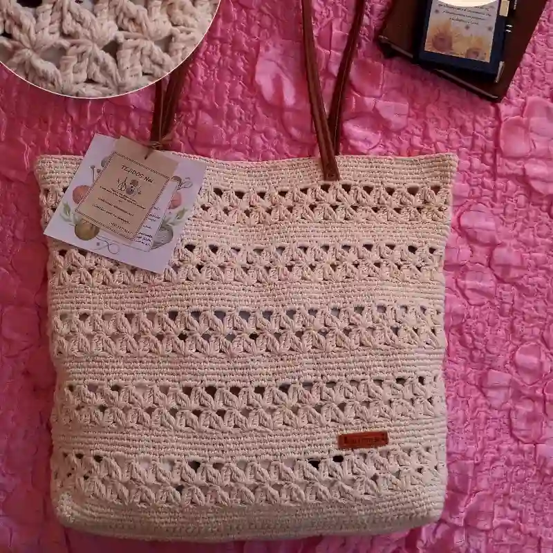 100% hilo algodón. Muy resistente!!! Trabajado con el punto jazmín. ¡Es muy versátil!