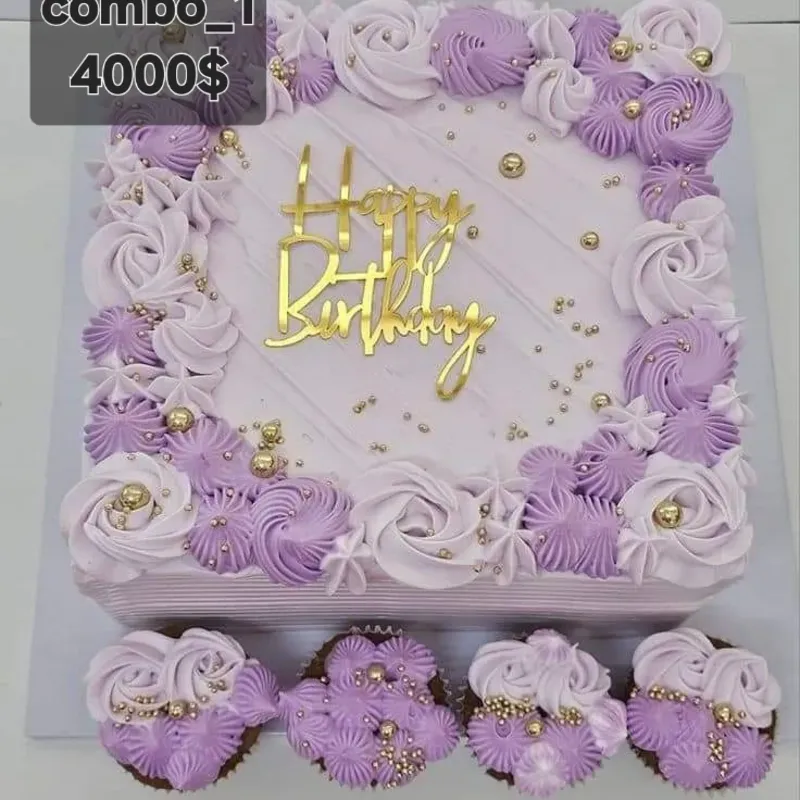 Cake de 27cm con 4 cupcakes todo decorados y con envases