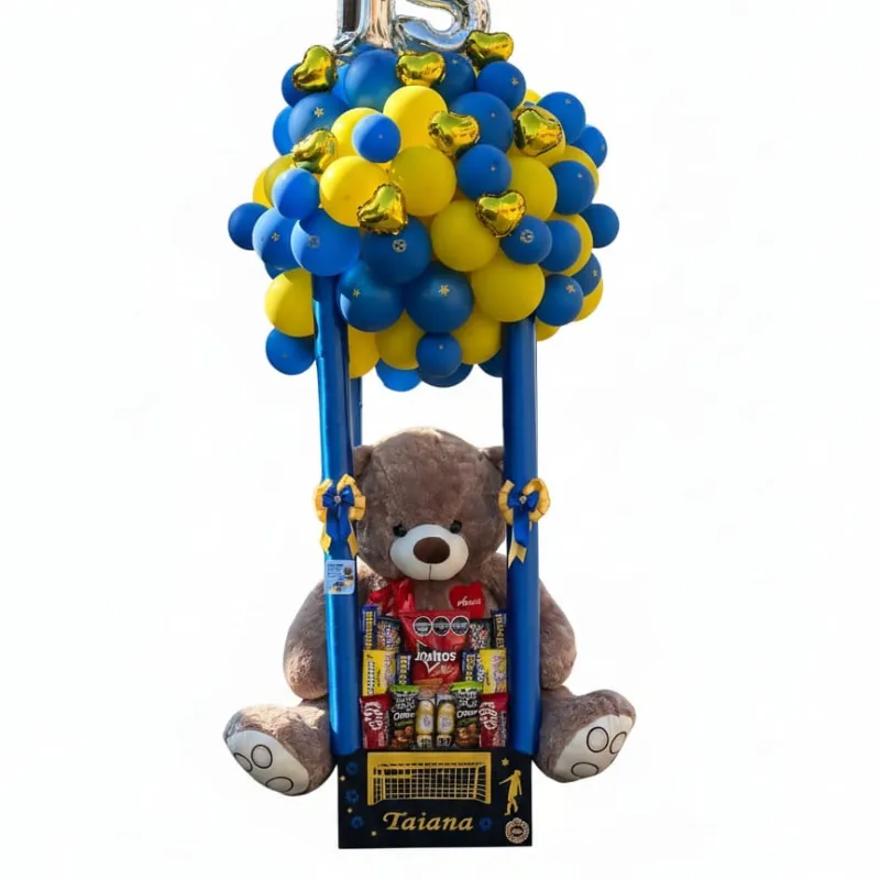 Regalo Luxury ( cesta de globos flotantes + oso + confituras)