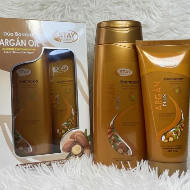 🧴Shampoo de Argán (400ml): •Puede ajustar eficazmente la secreción de grasa del cabello,evitando que el polvo se acumule causado por el cabello graso y mantiene el cabello fresco y elegante. 🧴Acondicionandor(230g): •Contiene factores de reparación, puede nutrir y cuidar completamente el cabello •Evita que la frágil piel de la cabeza sea dañada por los productos químicos •Reduce el deterioro de los folículos pilosos, promueve el metabolismo de la piel de la cabeza •Agrega humedad y nutrientes necesarios al cabello, mejora la sequedad