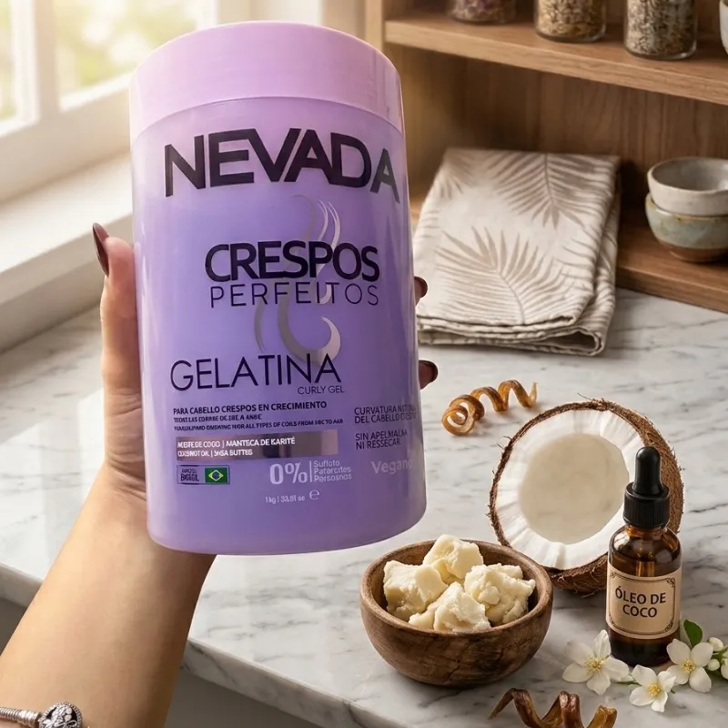 Este producto es la Gelatina Crespos Perfeitos de la marca Nevada, un gel estilizador diseñado específicamente para definir y cuidar el cabello rizado y crespo.