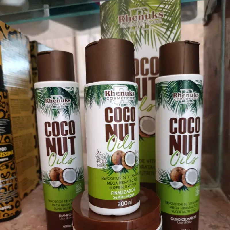 Set 4 en 1: Súper hidratación y mega nutrición con aceite de coco. Contiene: Champú: 400 ML Acondicionador: 400 ML Mascarilla de tratamiento: 280 gr Finalizador: 200 ML
