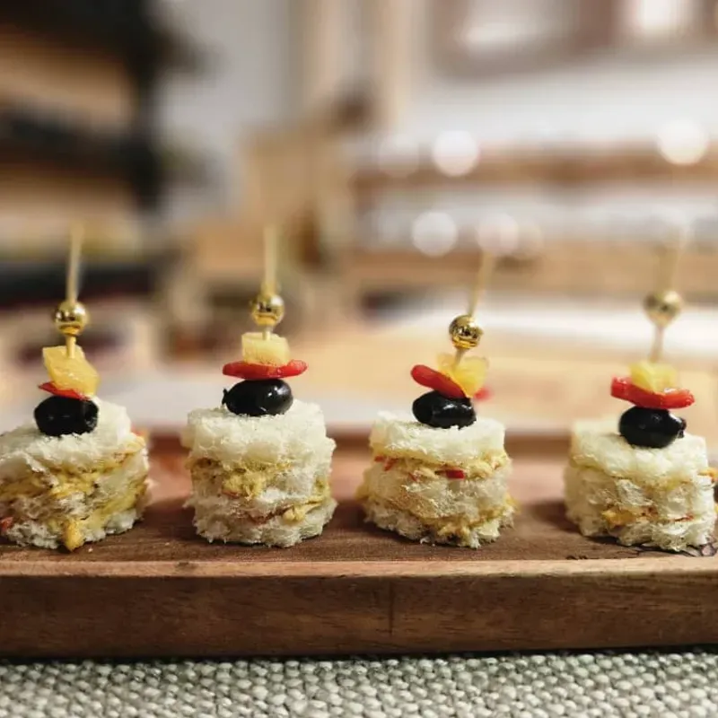 Combinación de pechuga de pollo, pan, pimiento y curry