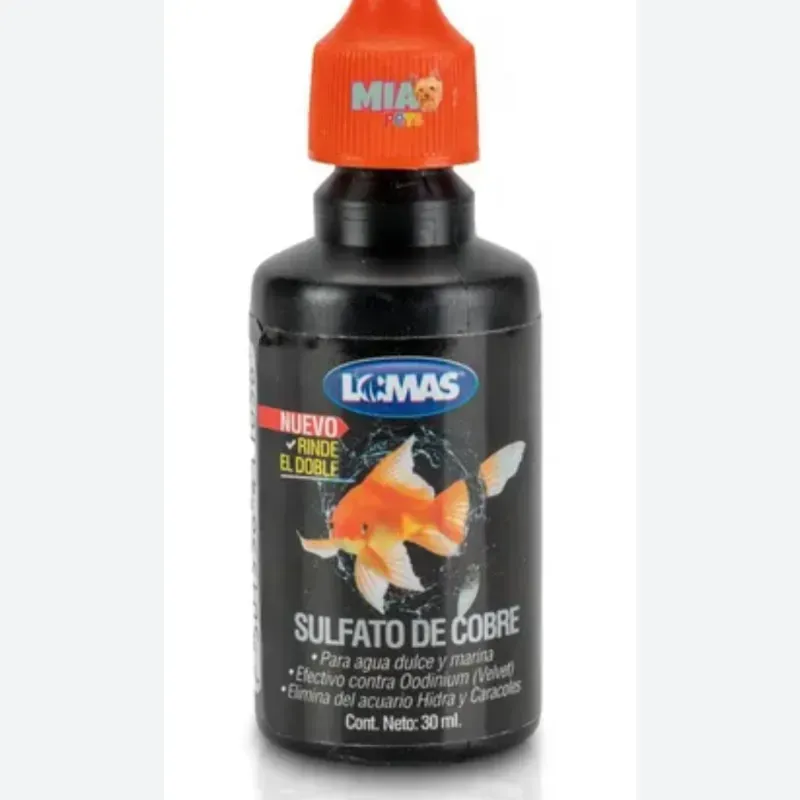 🧪 Sulfato de Cobre – Control Total en tu Acuario 🌊 Elimina amenazas invisibles con el poder del **Sulfato de Cobre**, un tratamiento eficaz para acuarios de **agua dulce y salada**. Diseñado para combatir **Oodinium (Velvet)** 🦠 y erradicar **Hidras y caracoles no deseados**, este producto es tu aliado en el mantenimiento de un ecosistema acuático saludable. 🔹 **Acción rápida y precisa** 🔹 **Frasco de 30 ml** – ideal para múltiples aplicaciones 🔹 **Compatible con acuarios marinos y de agua dulce** 🔹 **Controla plagas sin afectar a tus peces** ¡Mantén tu acuario libre de parásitos y organismos invasores! 🐠✨