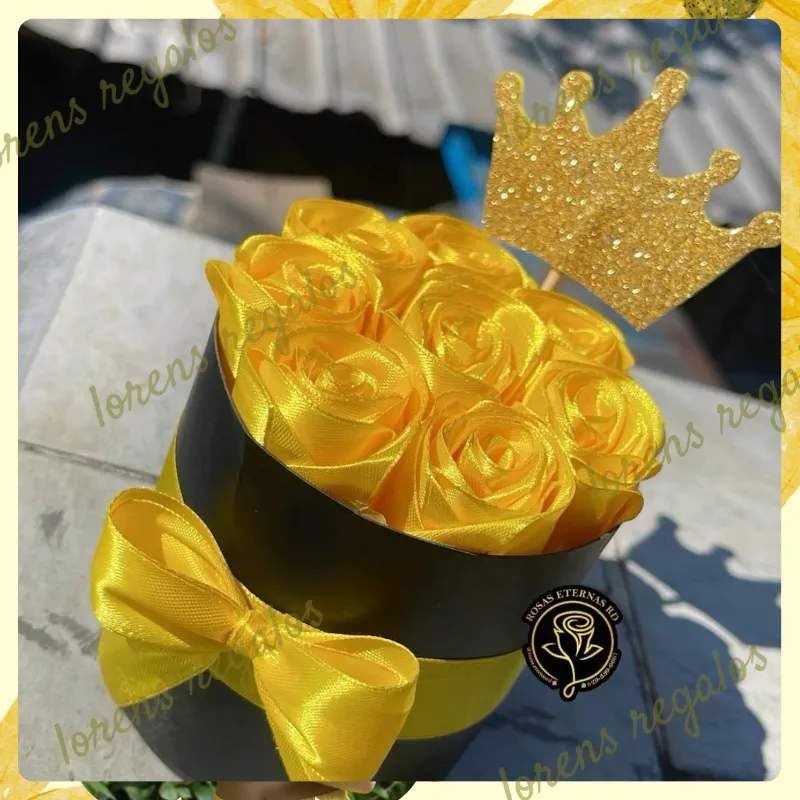 Caja de flores amarillas con toper personalizado