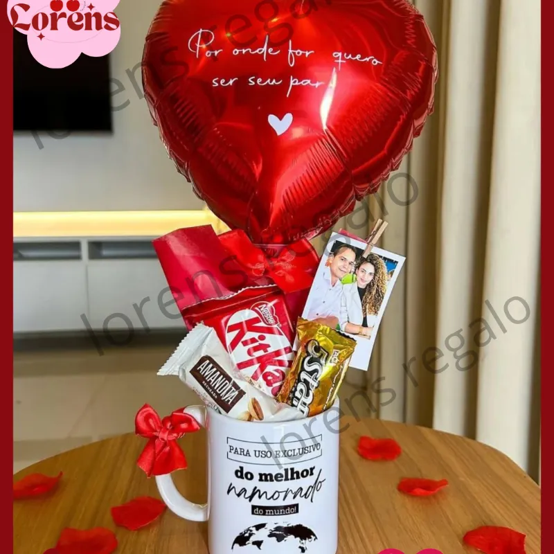Jarra personalizada al gusto, confituras variadas, una foto pequeña y globo de forma 🎈 frase del globo personalizada