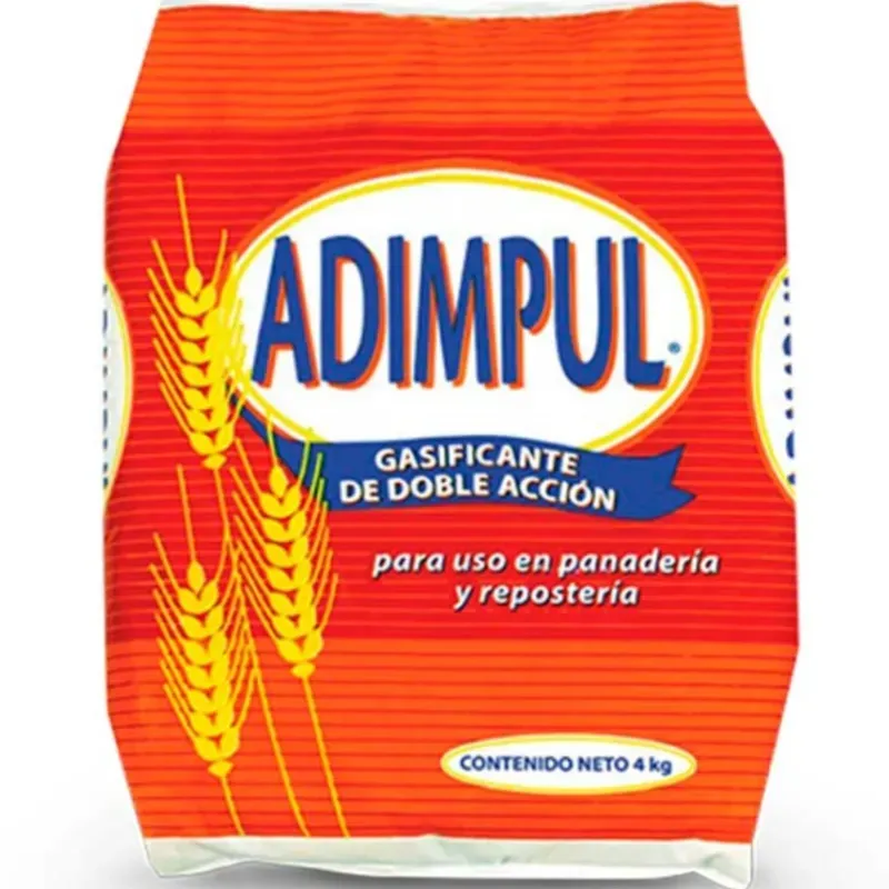 El gasificante Adimpul es un polvo de hornear de doble acción diseñado específicamente para uso profesional en panadería y repostería. Su función principal es actuar como agente leudante químico para aumentar el volumen y mejorar la textura de las masas.
