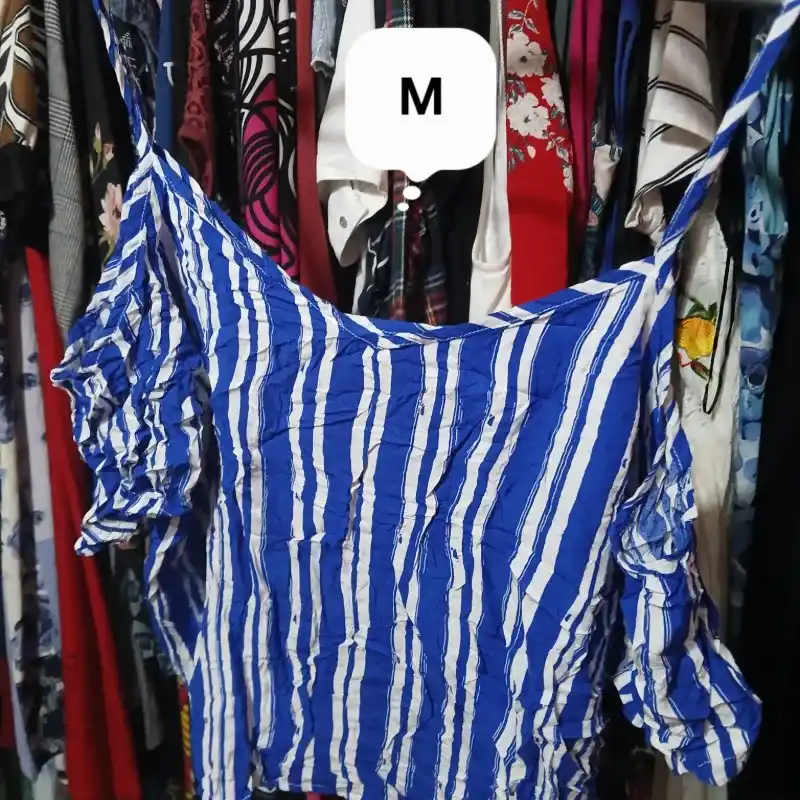 Blusa a rayas azul y blanca cajita