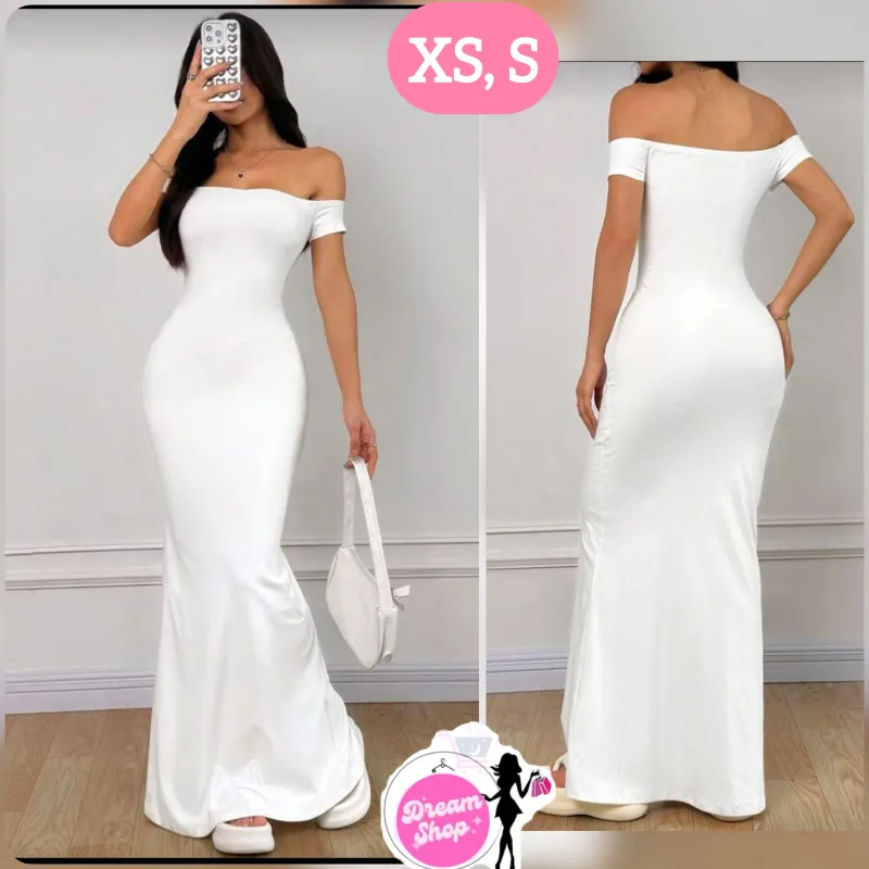 Vestido blanco largo estilo cola de sirena