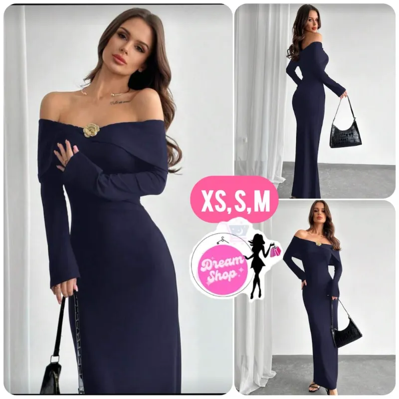 Vestido de mangas largas con hombros descubiertos