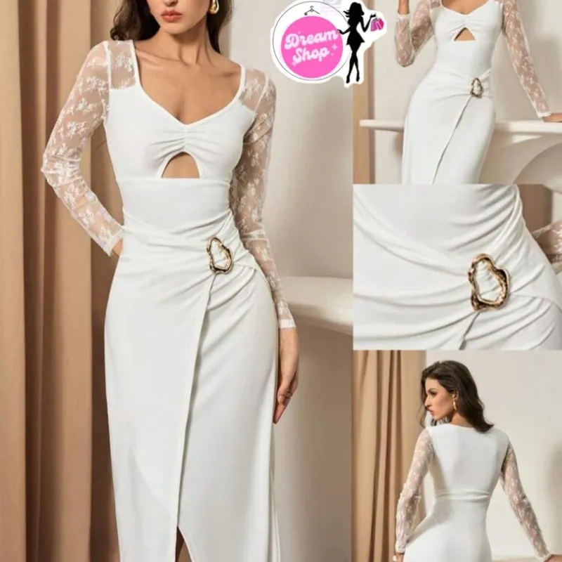 Vestido largo con mangas de encaje
