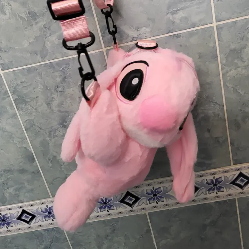 Carteras de stitch tipo peluche rosado