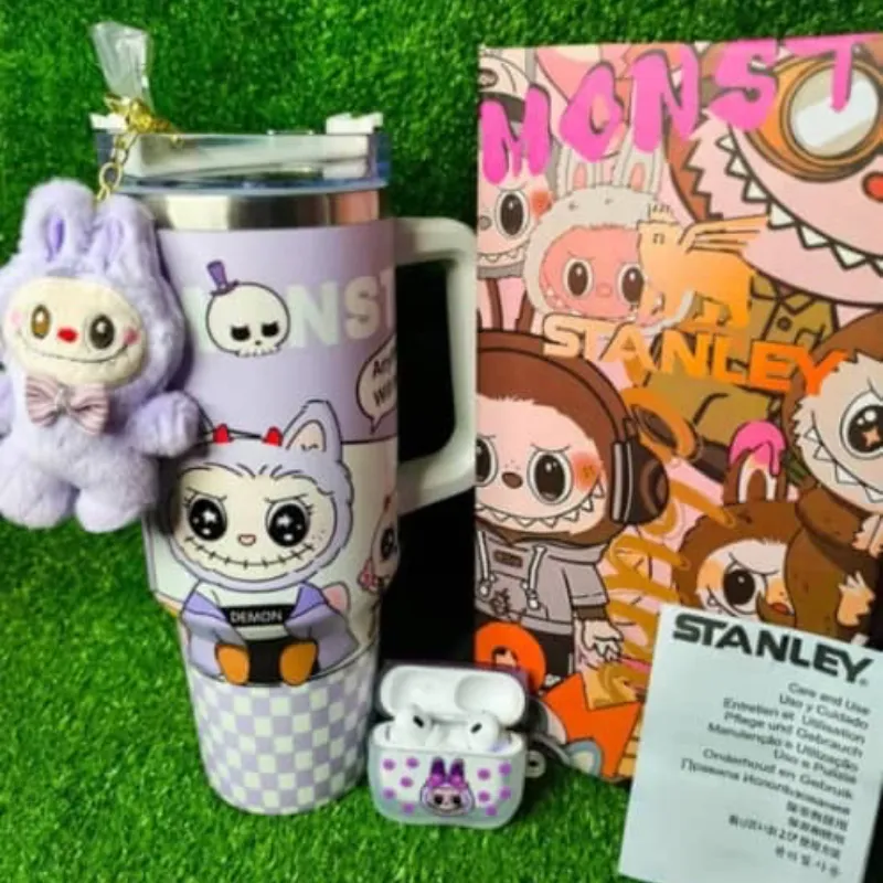 Jarra Stanley + Audífonos + Llavero Labubu