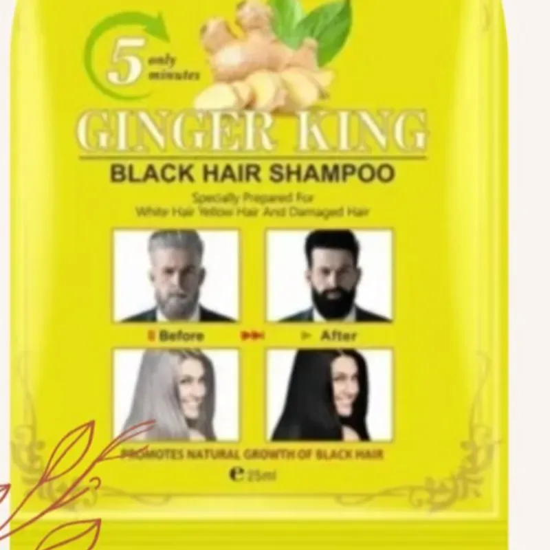 Sachets x 25 ml. Shampoo tiente de gengibre. Sin peróxido ni amoniaco. De 5 a 15 minutos de exposición. Cubre 100% canas. No se cae fácilmente. Su cabello teñido dura igual que in tinte convencional.