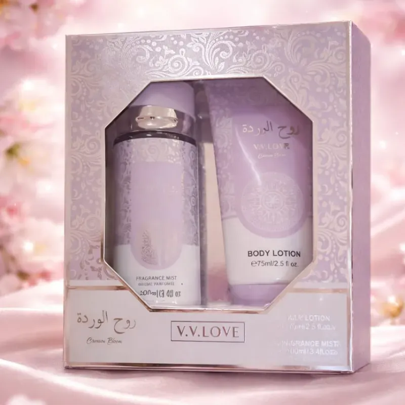 Inspirado en la suavidad de las flores, incluye una fragancia corporal y una loción hidratante, ideales para el cuidado diario de la piel.