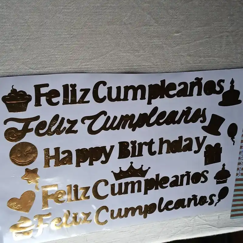 Vinil 5 frases en dorado de Feliz cumpleaños