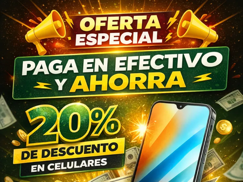 si realizas el pago en efectivo 💴 obtendrás un beneficio del 20 % de descuento del precio 🏆