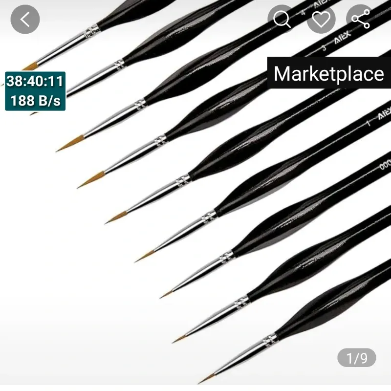 Es un conjunto de 9 pinceles de diferentes tamaños , su pelo es sintético y lo recomiendo para micropintura y acuartelados , se venden por unidades también.