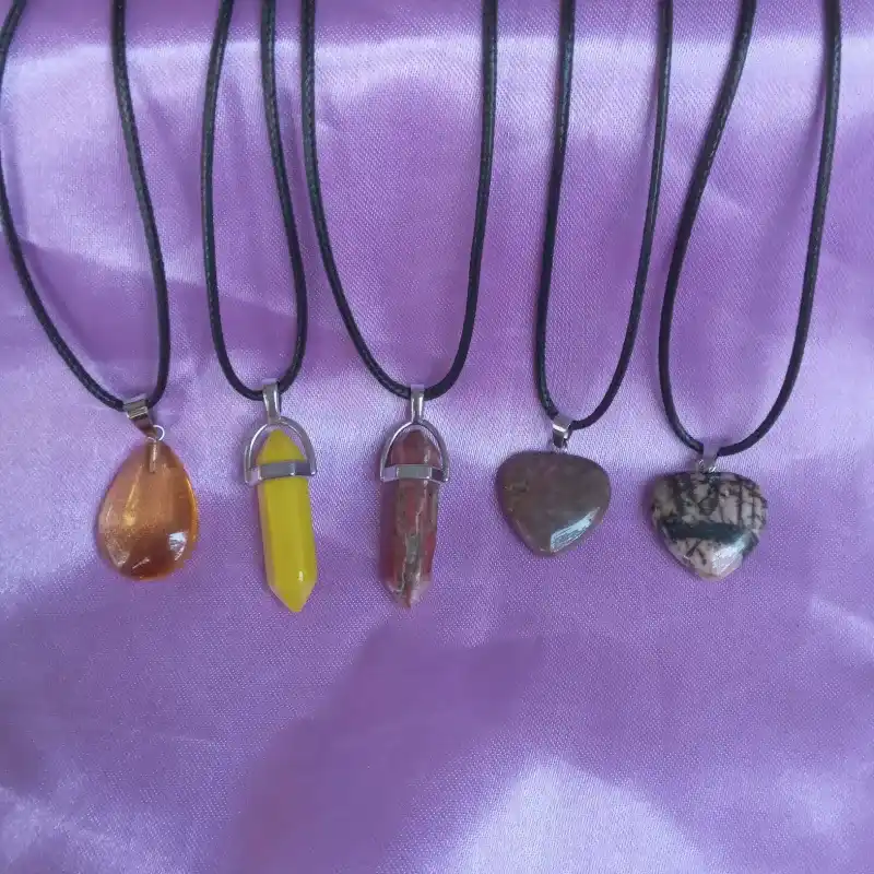Significado: simboliza alegría, energía y abundancia. Es una piedra que ayuda a atraer la luz, el éxito y la creatividad, además de fortalecer la confianza en uno mismo y la claridad mental. 🌞💛 - Cristal amarillo transparente (gota) - Cristal amarillo (péndulo) Significado: simbolizan estabilidad, protección y conexión con la tierra. Ayudan a mantener los pies en la tierra, a atraer seguridad y a fortalecer la confianza y la fuerza interior. 🤎 - Granito rojo (péndulo) - Jasper marrón (corazón) - Urtite (corazón): conexión ancestral, sabiduría y protección energética.