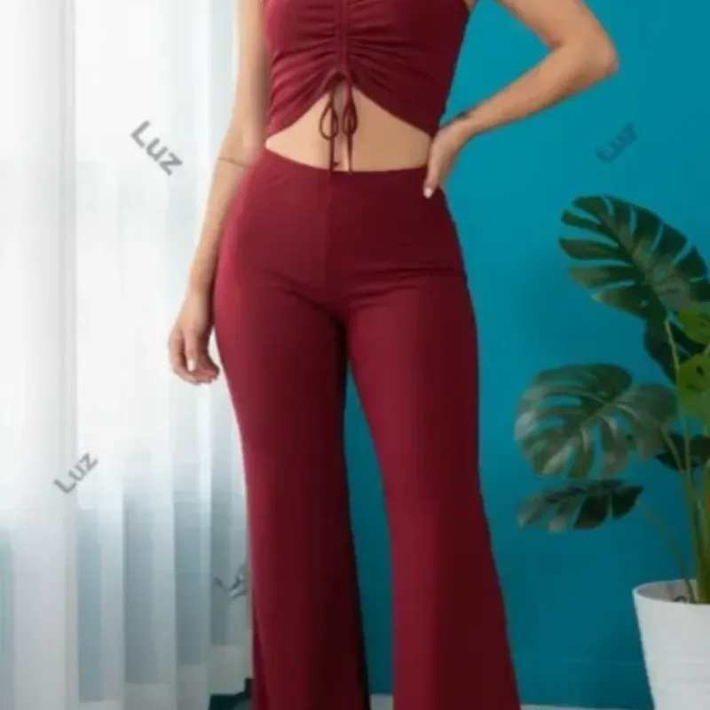 Conjunto de pantaloneta con top de tirantes y fruncido central