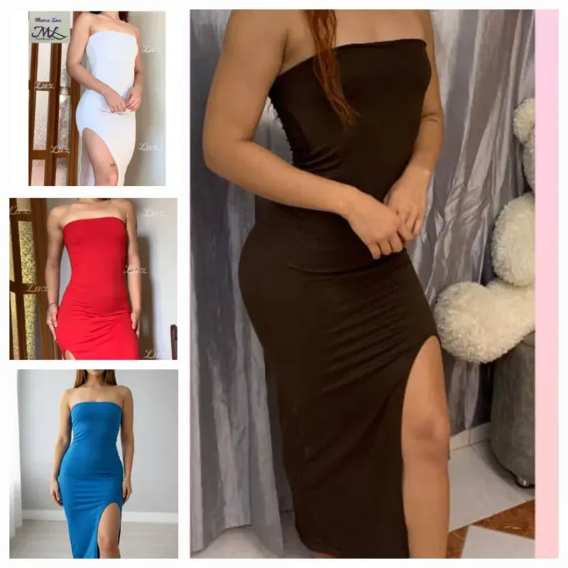 🙂Vestido estilo tope largo con abertura en una pierna✨️