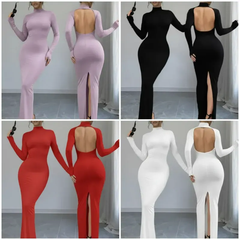 ✨️ Vestido largo con abertura en la espalda y abertura trasera en las piernas✨️