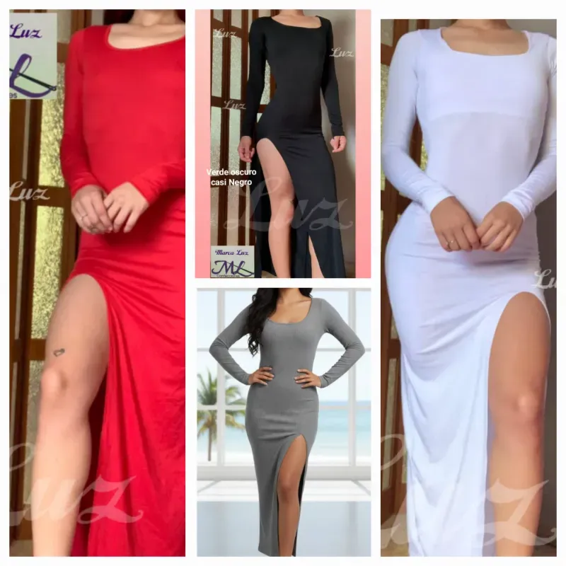 ✨️Vestido largo mangas largas con abertura en una pierna✨️