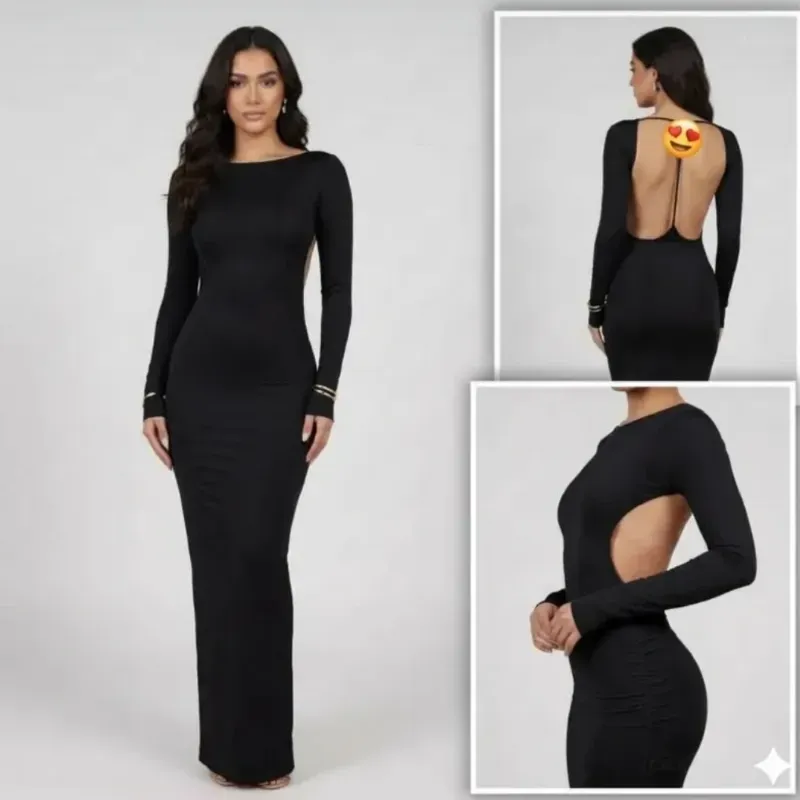 ✨️ Vestido tubular largo de mangas largas con la espalda abierta✨️