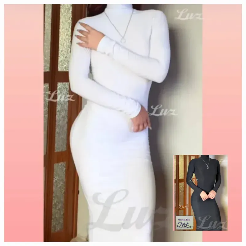 ✨️Vestido tubular largo de mangas largas y cuello tortuga✨️