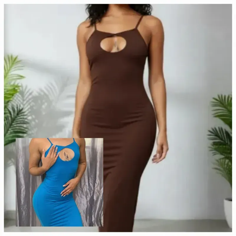 ✨️Vestido tubular largo de pecho abierto y tirantes amarrados al cuello✨️