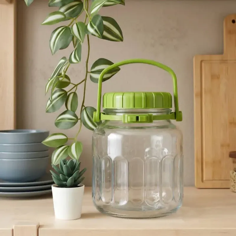 Pote de cristal con tapa y asa