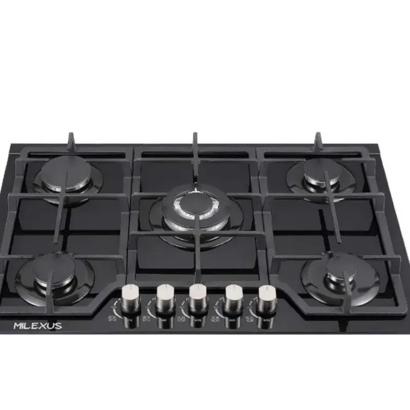 Cocina empotrable 5 quemadores Panel: Vidrio Templado Quemadores: Esmaltados Tamaño del quemador: 130mm*1/ 100mm*1/ 75mm*2/55mm*1. Auto lenicioni Parrillas de Hierro Fundido. Perillas de metal Dimensiones del producto: 72.5cm x 47.5cm Mensajería por un costo adicional 🚛