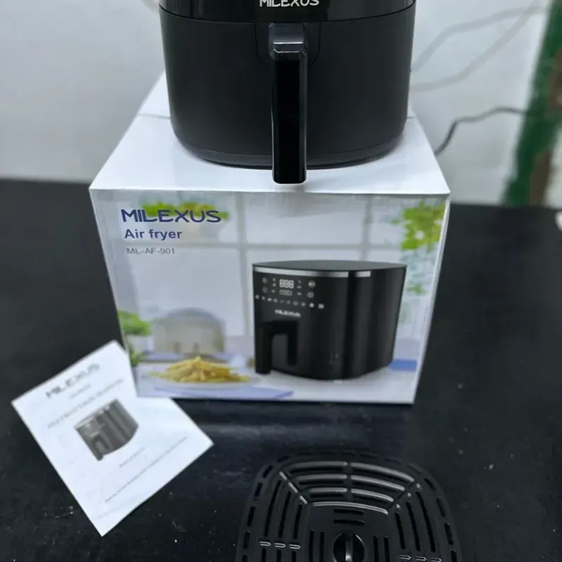 Marca Milexus - Capacidad 4.2 L - Modelo : ML-AF-901 - 120V - 60 Hz - 1400 W - Capacidad: 3.7 L (bandeja) (4.21 L (cajón - Cuerpo de plástico con acabado mate y anillo decorativo - Cajón antiadherente desmontable - Con protección contra sobrecalentamiento - Temperatura ajustable de 60 a 200 grados para diferentes recetas - Panel táctil de gran tamaño con opciones preestablecidas y de cocción, precalentamiento, mantener caliente, función de recordatorio de agitación - Apagado automático para una cocción precisa - Almacenamiento del cable de alimentación - Patas antideslizantes - Con unas pocas gotas de aceite o sin aceite durante el proceso de fritura, estilo de vida saludable 🚘 Mensajería incluida .