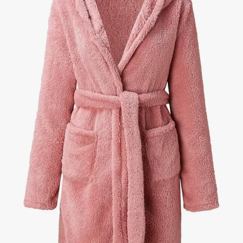 DISEÑO ELEGANTE Y FUNCIONAL: Cuello tipo smoking, dos bolsillos laterales cosidos y cinturón ajustable. Ideal como bata ligera para el uso diario.