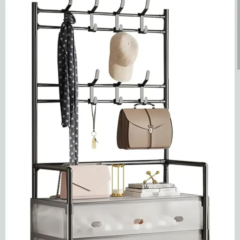 Perchero y zapatero de 5 niveles con funda antipolvo, organizador multifuncional para recibidor con 10 ganchos, resistente zapatero de metal para casa, pasillo y dormitorio (negro)