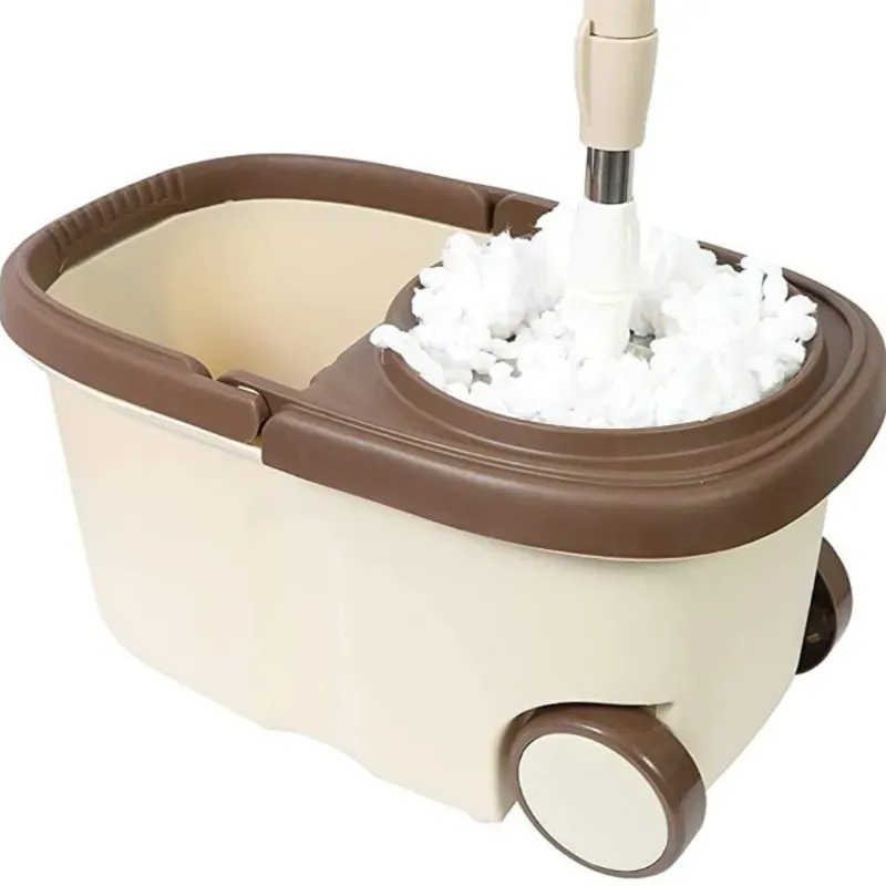 Contiene una Mopa extra de repuesto. Manija plegable y rueditas para su fácil y cómodo translado,filtro de Acero.Doble sistema de giro para lavarse y secarse .Se activa el giro directamente desde el palo y sin pedales. Mopas de micro fibras de excelente calidad.Palo de Acero inoxidable. 114cm