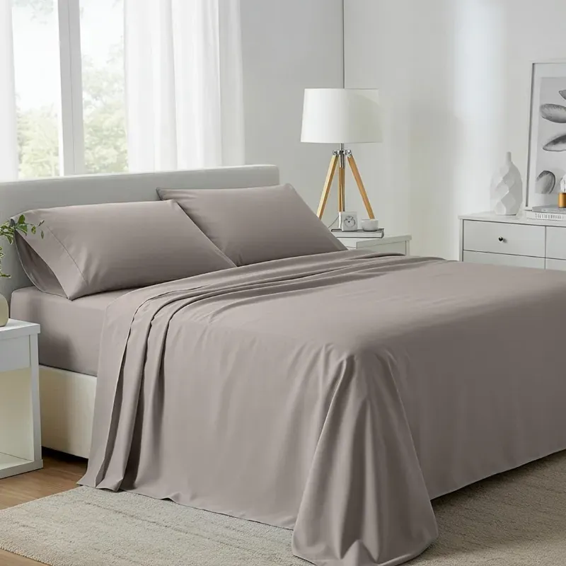 Juego de sábanas de 4 piezas con toque de algodón. Colores lisos, patrones discretos, elástico completo y grueso