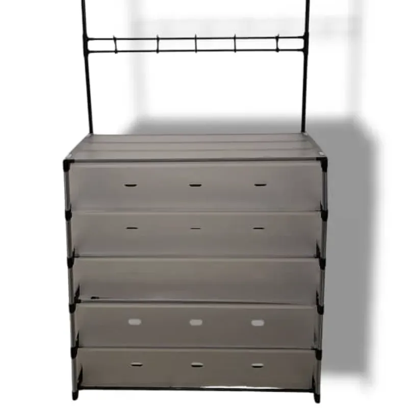 Perchero y zapatero de 5 niveles con funda antipolvo, organizador multifuncional para recibidor con 10 ganchos, resistente zapatero de metal para casa, pasillo y dormitorio (negro) Medida :184×36x80cm