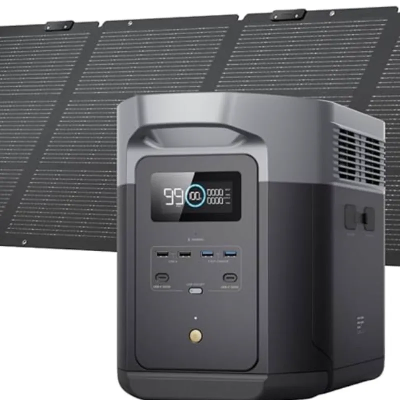 Delta 2 Max 2400W con pico de 4800W kit incluye cables, 2 paneles de 500W Bifaciales, 2 Base de panel, instalación y su cable Macho macho para conectar toda la Casa.