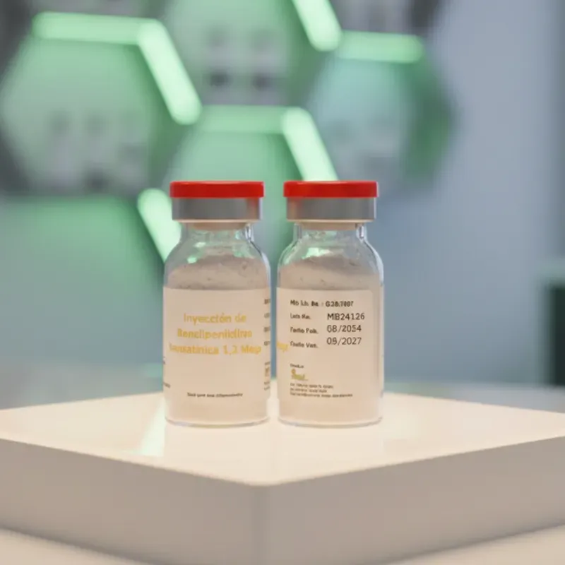 ## Características del Producto Nombre Genérico: Bencilpenicilina Benzatínica. Concentración: 1,2 Mega (1,200,000 Unidades Internacionales). Presentación: Frasco ampolla con polvo para suspensión inyectable. Vía de Administración: Únicamente por vía intramuscular profunda. Nunca debe aplicarse por vía intravenosa. Mecanismo: Es una penicilina de liberación lenta; una vez inyectada, el medicamento se libera gradualmente en el torrente sanguíneo durante varios días o semanas. ## ¿Para qué sirve? Este medicamento se utiliza para tratar infecciones causadas por bacterias sensibles a la penicilina. Sus usos principales incluyen: Faringoamigdalitis bacteriana: Especialmente la causada por el estreptococo del grupo A. Prevención de Fiebre Reumática: Se usa como tratamiento preventivo para evitar ataques recurrentes de fiebre reumática. Sífilis: Es el tratamiento de elección para diferentes etapas de la sífilis. Prevención de Glomerulonefritis: Ayuda a prevenir complicaciones renales tras una infección por estreptococos. ### ⚠️ Notas Importantes de Seguridad Aviso Crítico: Este es un antibiótico potente que solo debe ser administrado bajo prescripción y supervisión médica. Alergias: No debe usarse en personas alérgicas a las penicilinas o cefalosporinas, ya que puede causar un choque anafiláctico grave. Preparación: Generalmente requiere ser diluida con agua destilada o lidocaína (si el médico lo indica) antes de su aplicación.
