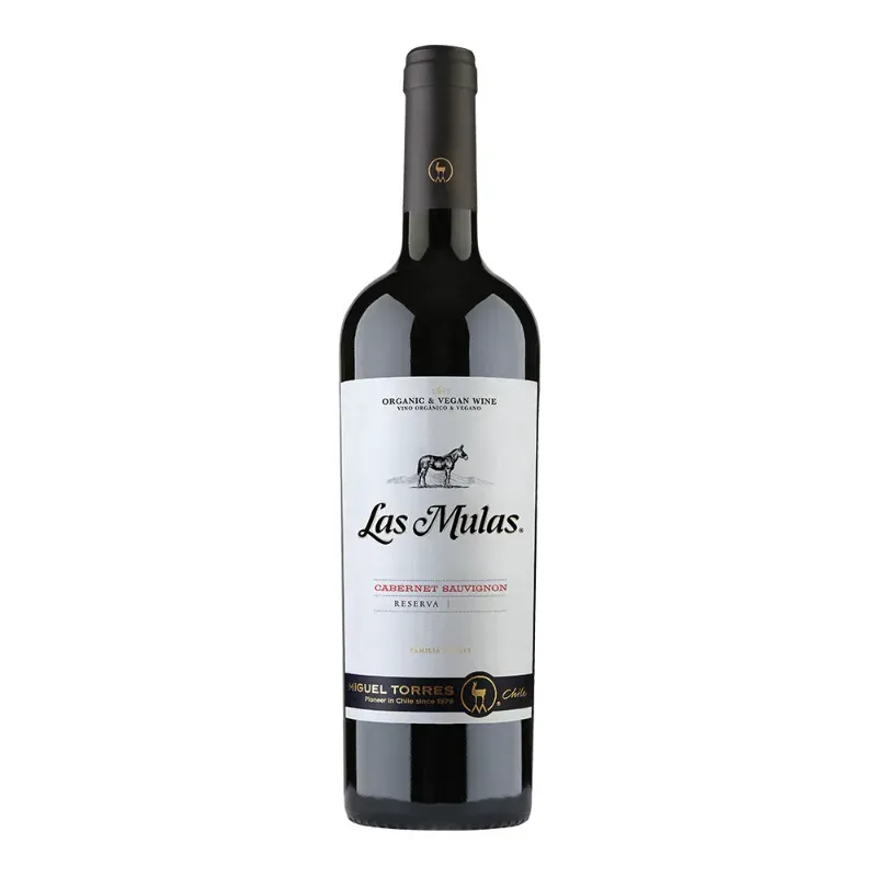 El Miguel Torres Las Mulas Cabernet Sauvignon Reserva es un vino tinto chileno elaborado con uvas 100% orgánicas del Valle Central. Es reconocido por su compromiso con la sostenibilidad, siendo apto para veganos y producido bajo prácticas de agricultura orgánica que rinden homenaje a las mulas utilizadas tradicionalmente en el campo.