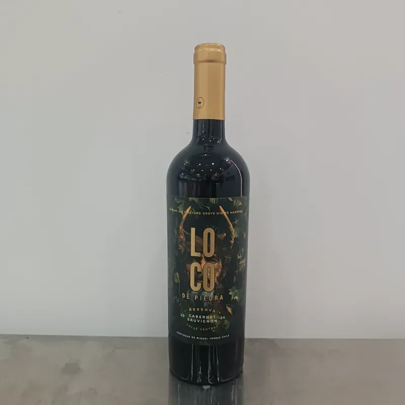 El Loco de Piedra Reserva Cabernet Sauvignon es un vino tinto chileno producido por la prestigiosa bodega Miguel Torres Chile. Proviene principalmente del Valle Central y se caracteriza por ser un vino accesible, equilibrado y con un perfil aromático clásico de la cepa.