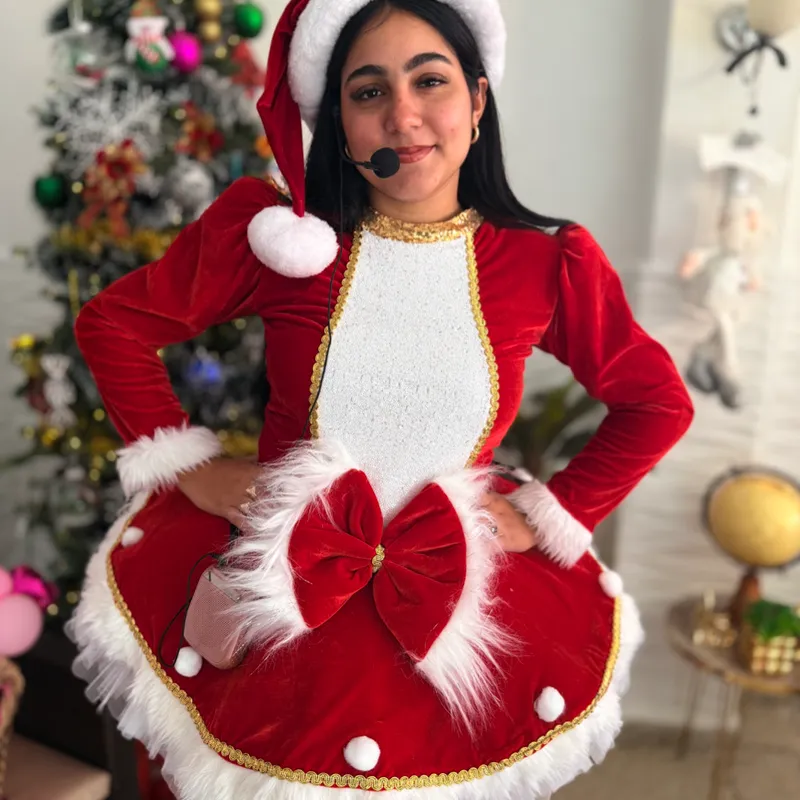 ✨ Animadora Navideña – Dayana ✨ En esta Navidad, Dayana lleva la verdadera magia navideña a cada entrega. Llega con un disfraz súper hermoso, representando a nuestro equipo, y con su micrófono presenta todas las sorpresas y notas enviadas por los familiares. Es dinámica, cercana y crea un ambiente emotivo y especial. Además, realiza fotos y videos del momento. Su trabajo es muy profesional, diferente y le aporta un toque de exclusividad a cada entrega, haciendo que cada experiencia sea única. 🎄✨📸🎤