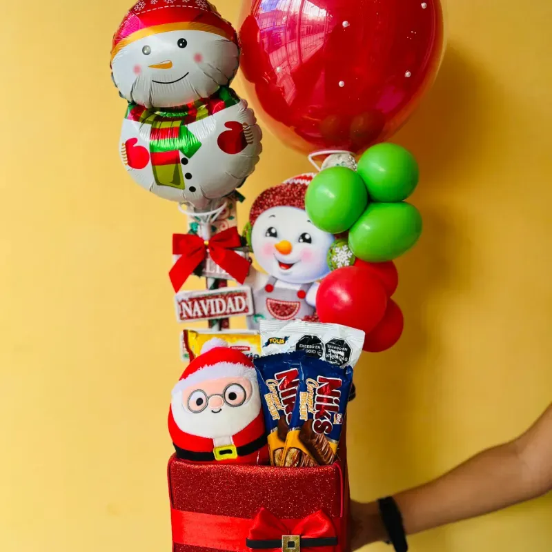 Contiene peluchito, confituras, adornos navideños Incluye animación