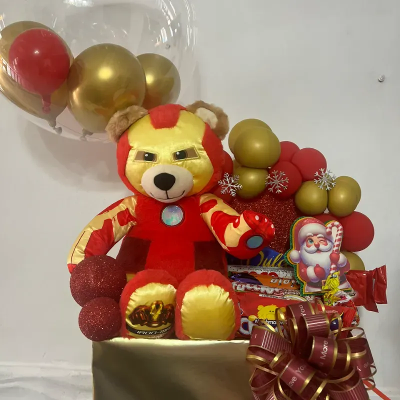 Contiene peluche, confituras, globo burbuja y adornos navideños Incluye animación de mamá Noela